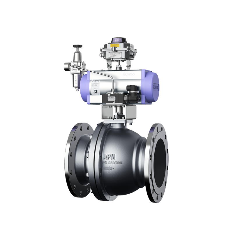CT-RA系列O型直通球阀,由CURTO系列双活塞驱动齿轮齿条式角行程气动执行机构及O型直通球阀阀体组件两大部分构成,DN15~DN200为浮动球结构,DN250~DN300采用固定球结构,专门的弹性密封阀座结构不仅保证密封可靠,而且与直通圆柱形流道孔球体阀芯相配合对粘性介质具有很好的自清洁作用,对纤维介质又有剪切防堵功能,全通径设计,流体压力损失小,不同的金属及非金属密封材 质组合可确保在-29℃~450℃工作温度范围内输送可靠,切断性能卓越,CT-RA系列O型直通球阀具有结构紧凑,运行灵敏、平稳,使用寿命长的特点,可广泛应用于石油、化工、电力、造纸、冶金、污水处理等工业控制领域。
